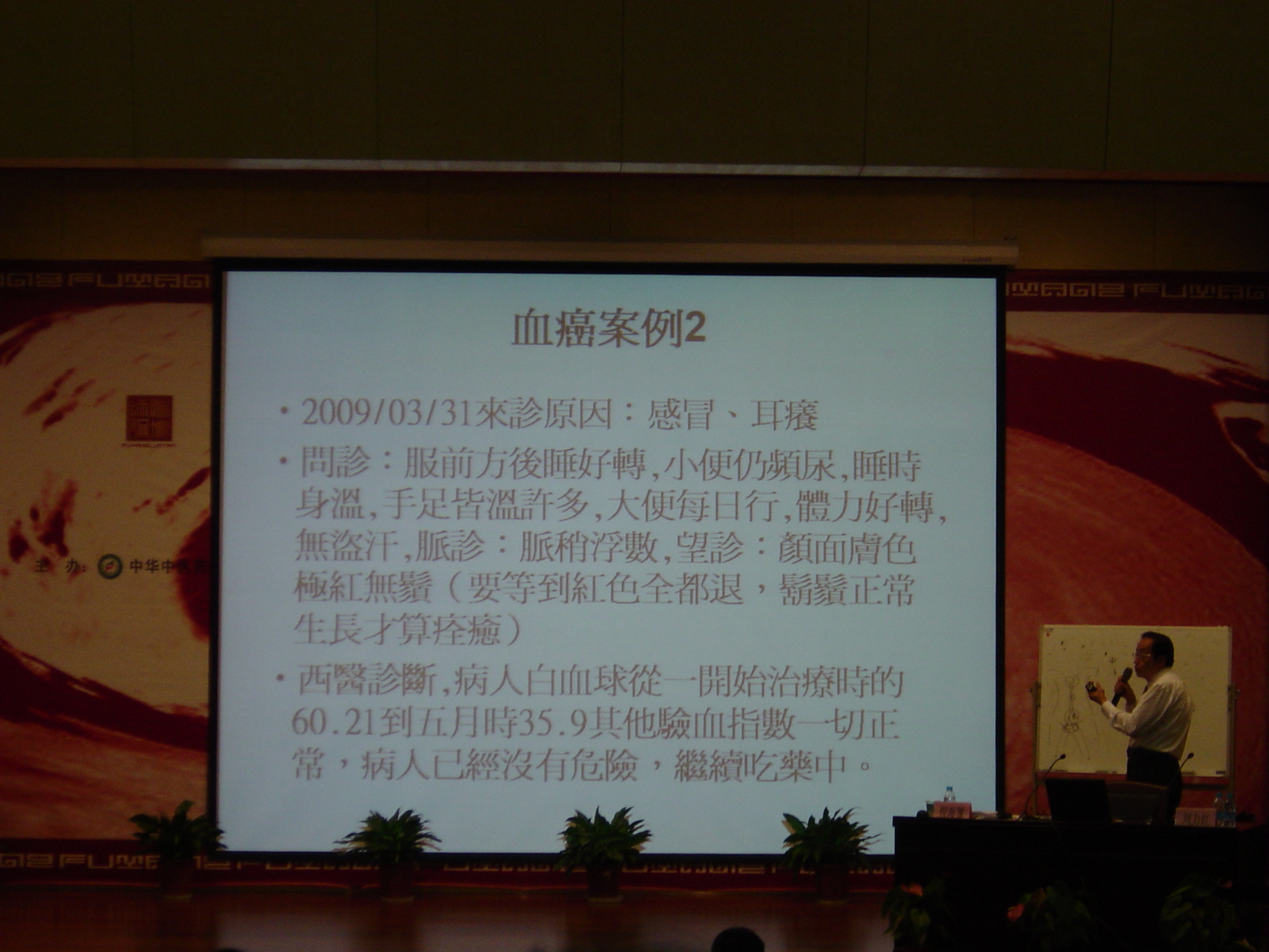 再者這次來參與演講的聽眾中,大都是來自中國大陸各省的中醫界菁英,還有來自海外的開業中醫師,對你們我真的是很抱歉,由於這次論壇的目的只是演講,不是親自看病與教學,再加上我體力不足導致我實在無法一一回答你們提出的問題,我在這裡跟大家說聲對不起,以後機會必將很多,只要我體力足夠,我就會提供我個人的淺見,對於大家提出的這些醫學上很專業的問題,給大家一些我個人的看法與想法,我們互相切磋的機會以後一定會有,請大家稍安勿躁,我會想辦法來解決這個問題的。