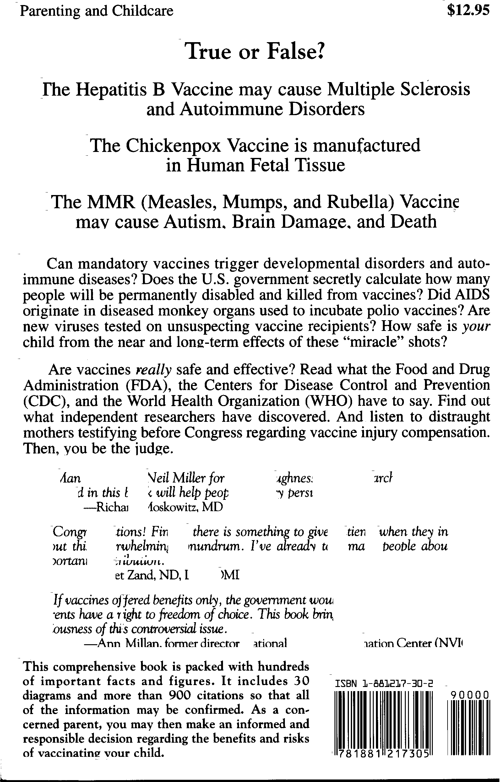 讀者可以去買這本書來參考 , 這是一本被大眾接受且信任的一本好書 , 不知台灣有無翻譯本 , 現在我這是原文的 , 因為太忙了所以我長話短說 , 提出一些重點給讀者看 , 根據該書所列舉有關疫苗問題的資料已經嚴重到什麼程度了 .